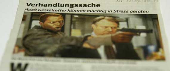 Für den Tagesspiegel ![]() Was Morgan Freeman an Würde und Stolz ausstrahlt, dass verkörpert Samuel L. Jackson an Kaltblütig- und Skrupellosigkeit. Denn einer muss schließlich immer der Gute sein und ein anderer immer der Schlechte. Ein altes Spiel. Da ist es also nur logisch, dass Regisseur Gary Gray, der vorher schon solide Kost wie „Stirb langsam“ drehte, dieses altbewährte Muster aufgreift und es auf seine Weise umsetzt. In „Verhandlungssache“ rettet niemand in Bruce-Willis-Manier die Welt, und es geht auch nicht um einen Haufen Irrer, die wieder mal die Öffentlichkeit und den Weltfrieden bedrohen. Vielmehr ist „Verhandlungssache“ ein Krimi-Thriller, der im Polizeimilieu angesiedelt ist, und raffiniert Psychologie und Action miteinander verbindet. Und erfreulicherweise des Rätsels Lösung bis zum Schluss offen lässt. Aber trotz großartiger schauspielerischer Leistungen kommen die Akteure zeitweise nicht drum herum gängige Klischees zu bedienen. Etwa, dass auch im härtesten Manne ein liebendes Herz schlägt. Oder dass Mut wohl die größte aller Eigenschaften ist. Aber abgesehen von diesen Feinheiten bietet „Verhandlungssache“ hochwertige Action, knisterne Spannung und gelungene Psycho-Duelle. Polizei-Verhandlungsspezialist Roman hat in Chicago bei Geiselnahmen genug zu tun. Als dann aber sein Kollege und Kumpel im Auto erschossen aufgefunden wird, steht er auf der Verdächtigenliste ganz oben. Zudem taucht in seiner Wohnung auch noch Beweismaterial für einen Korruptionsfall auf. Da sieht Roman nur noch eine Möglichkeit, die Schuldigen zu entlarven... Verhandlungssache USA 1998 Regie: Gary Gray Darsteller: Samuel L. Jackson, Kevin Spacey... © Marcus Douale